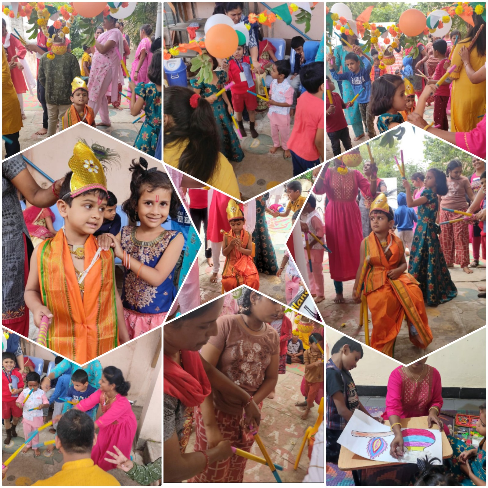 On 18-Aug-2022, on the occassion of Janmashtami we celebrated Dahi handi and did Dandia for kids at our center. Cute little Krishna and Radha were looking really adorable. We also did Coloring of Dahi handi as a activity. After the program all children enjoyed Gopal Kala as Prasad.