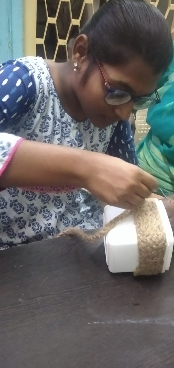 • We received order for pen stand from Dr. Sudarshan. Trainees were busy braiding, stitching the jute and making it into final products. The target date of delivery was Sept 2, 2022.