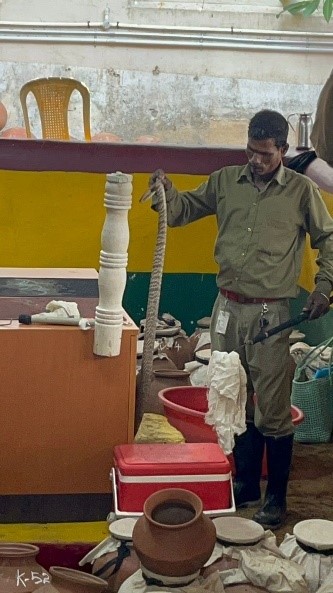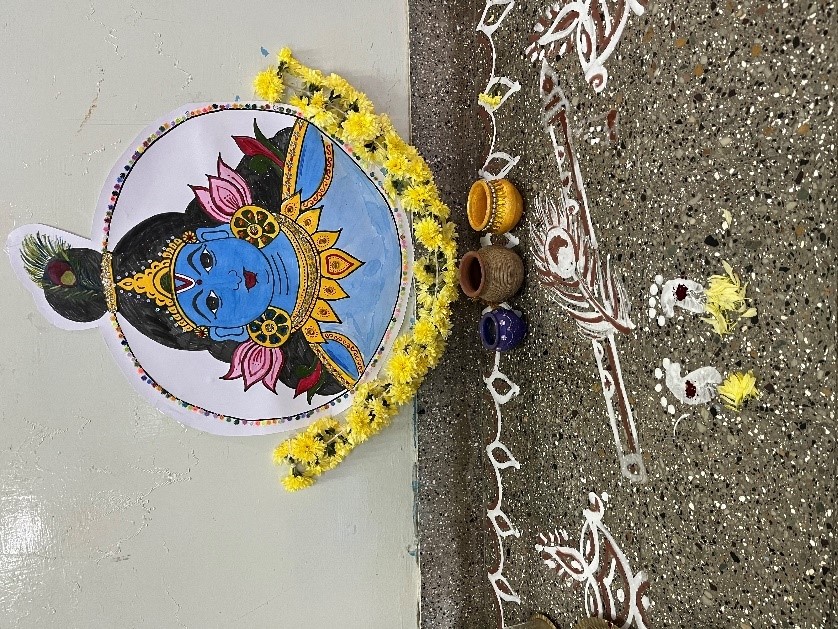 It was time for Krishna to come into KLC and every classroom brought him in different time frames – some became Vrindavan – where he grew up, some became Dwaraka where he ruled, some classes were converted to Mathura where he was born. We invited a cow, an integral part of Krishna and the students fed it and Vasanthi aunty worshiped it in the traditional way. We had the traditional Uri Adi by the students and staff, followed by a small puja, welcoming Krishna.
