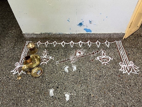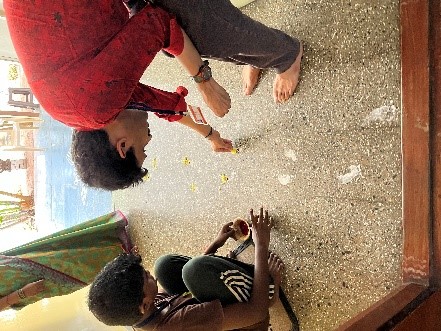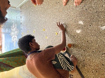 VTU trainees were made to draw Krishna and painted him with beautiful colours mentored by therapist Vasanth. Trainees along with teachers help, drew the footsteps of Lord Krishna. Puja was performed and Krishna's favourite snacks of seedai, vella seedai, murukku and fruits were offered which was distributed to the trainees and staff. We all sang bhajans of Krishna taught by volunteer Rama.