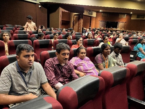 After a break of two years finally Tarang had a live performance at Bharatiya Vidhya Bhavan on Aug 11, 2022. Trainees of VTU, along with other units attended the dance performance on the theme of Krishna Leela by Smt. Vadehi Harish, Nirthya Samsriti. It was a wonderful program with Krishna's Leela and all the students and trainees connected with the songs and the stories. The dancers were very happy to perform and kept the audience with full vibes.