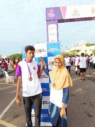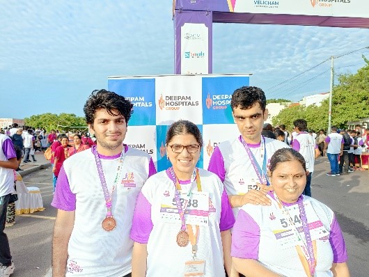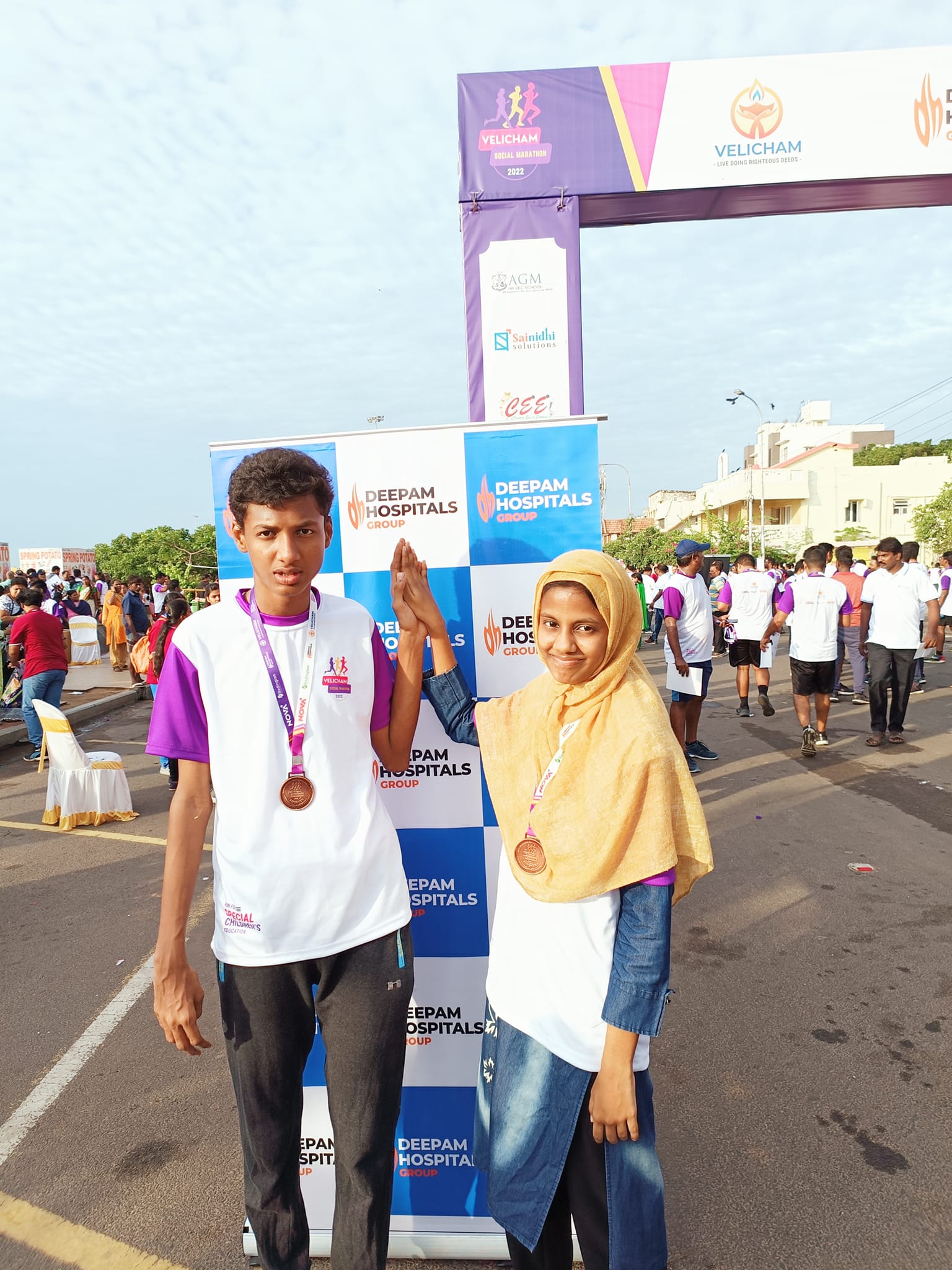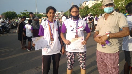 Trainee Chandra along with teacher Abhirami and Admin Manager Manivannan participated in the Marathon along with other units at Elliots Beach for a 2 KM run. They received a medal and certificate.