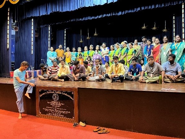 As every year, YES had a combined Independence Day celebration with the other vocational centre at Sreyes, Adyar. From YES 3 programmes were performed for the day that carried a theme, Unity. First one was a dance by 7 male trainees and 3 female trainees along with 3 trainers. The songs were chosen to suit the theme and the occasion. Second was the presentation of artwork co created by the YES trainees. These were presented to the audience in both verbal and sign language. Third and final item from YES was a poem recital. While one trainee recited the poem in Tamil, the other translated it for the audience. All the programs were well received by the audience and much appreciated.