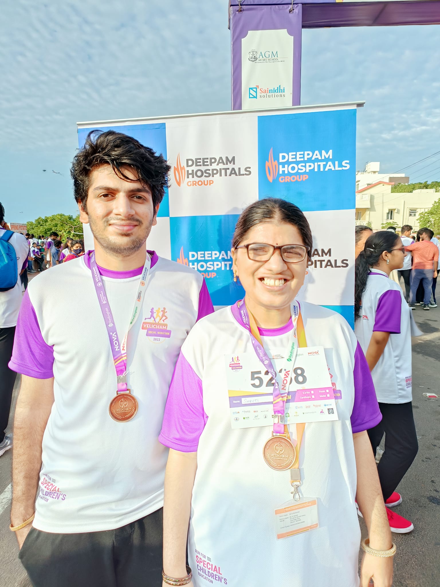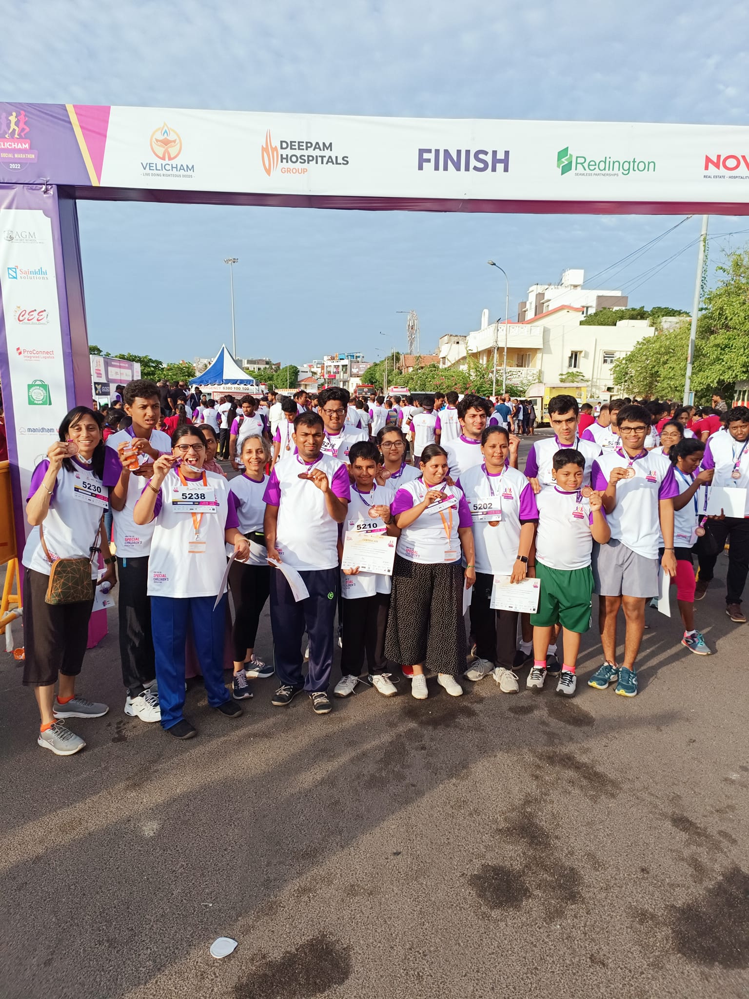 For many of us this was the first marathon after the pandemic and for many children it was their first marathon. Special children as young as 3 years participated and completed 2 km run. All the young adults from both the vocational training centres in Chennai completed 5 km run. It was very encouraging to see siblings of YES trainees run with them to show their support and love.