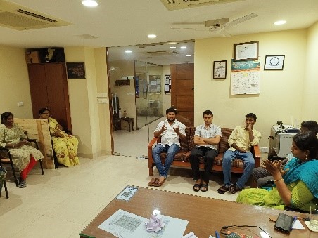 Our CSR partner Grundfos Pumps Country Head Mr. George Rajkumar along with Ms. Apoorva, CSR Head visited our unit on Aug 30, 2022 at 9.00 am and stayed till 11.00 am. They watched all our activities and products. He interacted with trainees and he watched the vocational activities. Supraja explained about scanning process the project supported by them Digitization of Records. He was very happy to see the activities and was ready to support for internship and placements. They visited all the centers at Chennai.