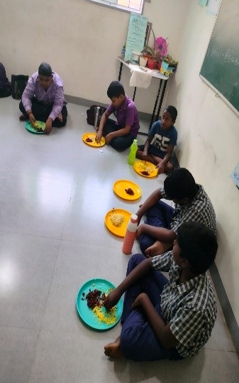 • Tea and kanji making by Raghavendra, Rithvik and Meenakshi with guidance of teachers and Veerasekar, Vishal and Adrian will serve kanji to Trainee and tea to staff independently on a rotation basis.
