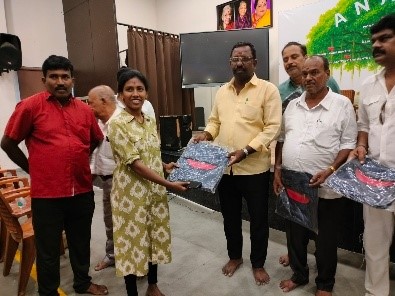 • Received design and color from SNEH for Block printing in Gada Material. This month we printed 40 mtrs double printing and three-color printing by Rithvik, Ashwin and Varun with the guidance of Raja.