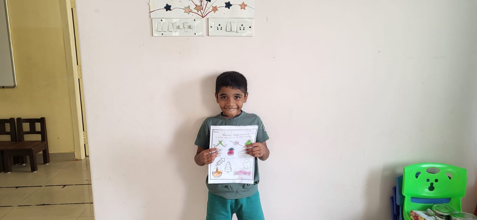 In the early intervention and remedial unit, activities were centred around Navratri. Our children enjoyed solving puzzles, reading short passages about Navratri, singing short rhymes and solving story problems about the festival.