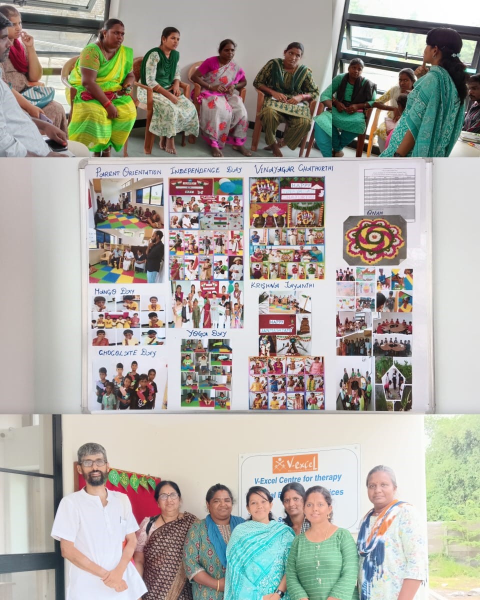 Shri Anand Jagadeesan and Smt . Lekshmi Ramesh held one-on-one meetings with parents at V-Excel Therapy and Special Education Centre, Kolapakkam on 19th September 2025. The discussions focused on individual student progress in areas such as speech, communication, behavior, self-skills, and overall development. Key highlights included: