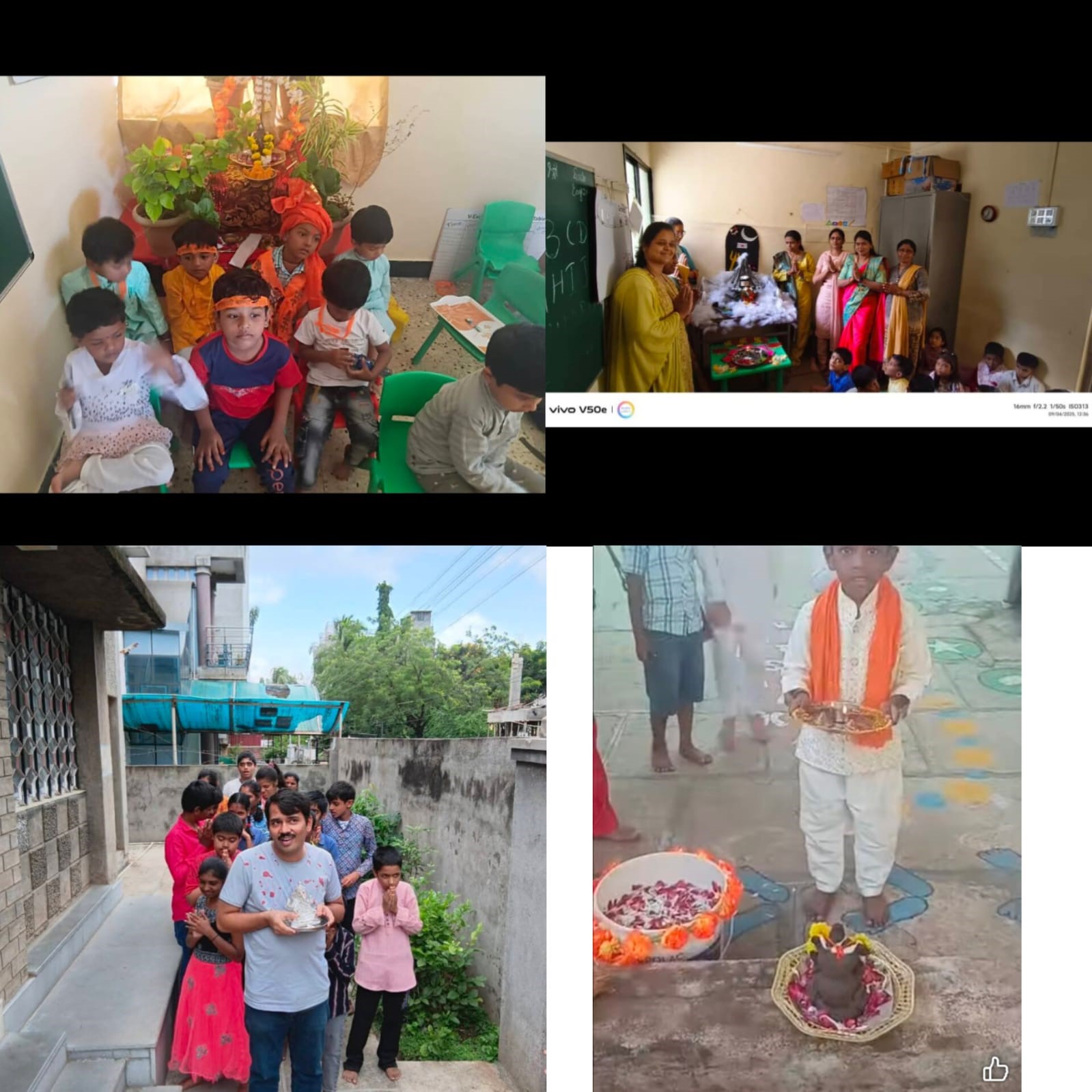 Here's a wholesome glimpse of celebrations across all centers of V-Excel. At the YES Center(Mylapore), trainers and trainees joined for prayers and devotional songs, expressing their spirit. They also showcased their creativity with drawings, crafts, and vibrant colors. In Tiruvannamalai, students sculpted idols and performed simple yet heartfelt pooja. At Pandharpur, students handcrafted and painted idols with care and offered prayers with tradition.