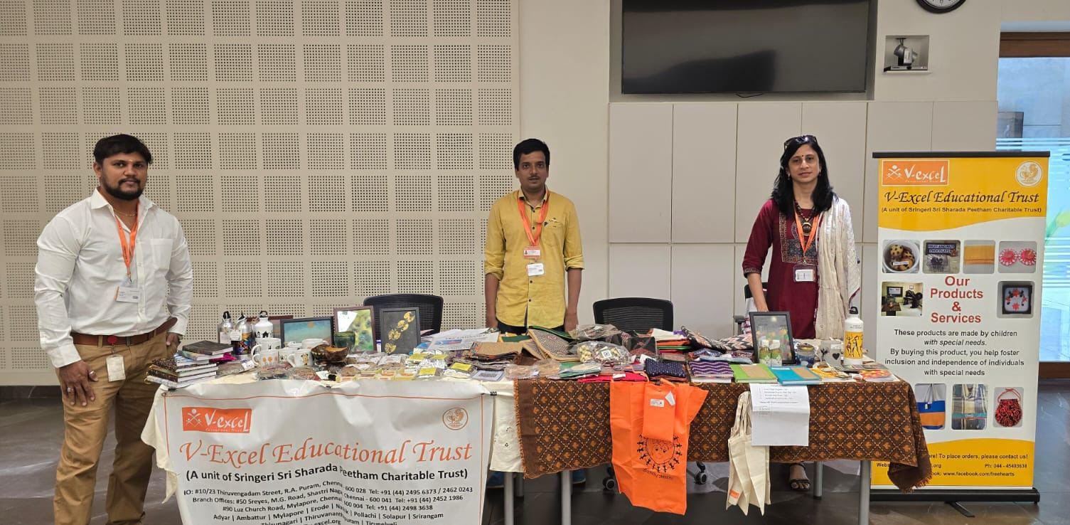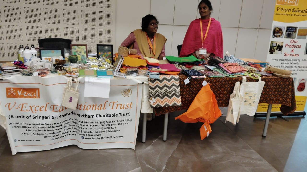 Ramesh and Manivannan attended the sale organized by Vidhya Sagar, where more than 20 NGOs participated. From V-Excel, the VTU team represented and managed the stall.