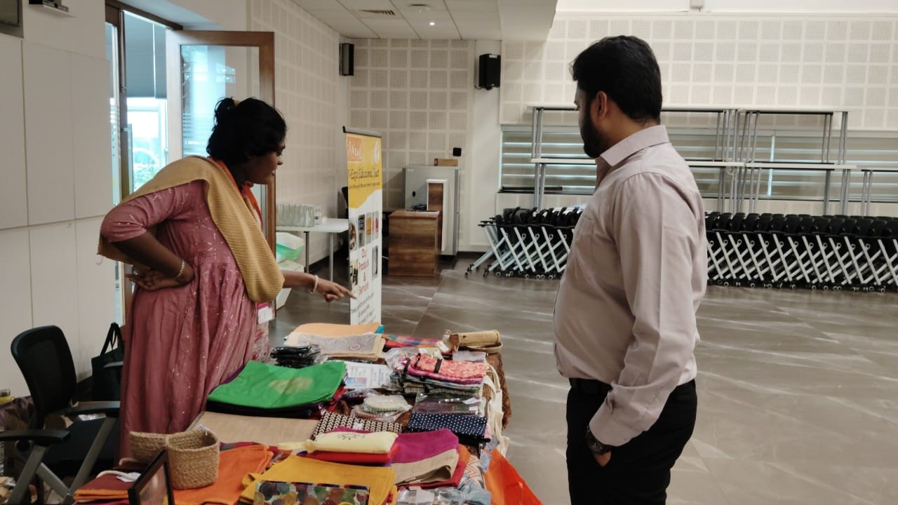 Trainee Sousan, Teacher Anu, and Manivannan attended the sale. Sousan explained the products clearly to the Grundfos staff, and they showed keen interest by voluntarily asking about each product’s name and price.