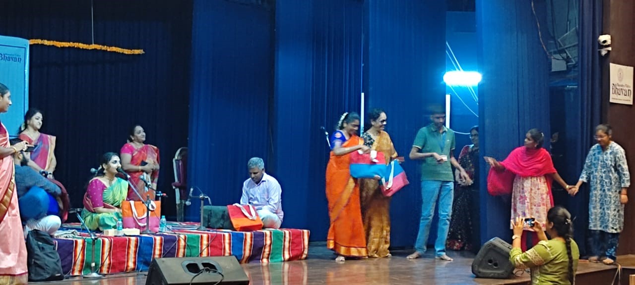 VTU attended September month Tarang at BVB on Thursday, 18th Sept. It was a wonderful program and theme was Sampradhaya Bhajans performed by Kum. Rajeevi Ganesh and party. The performance of the bhajan was stunning. Her expressions especially for the song about different kinds of ‘laughter’ was appreciated by the trainees.