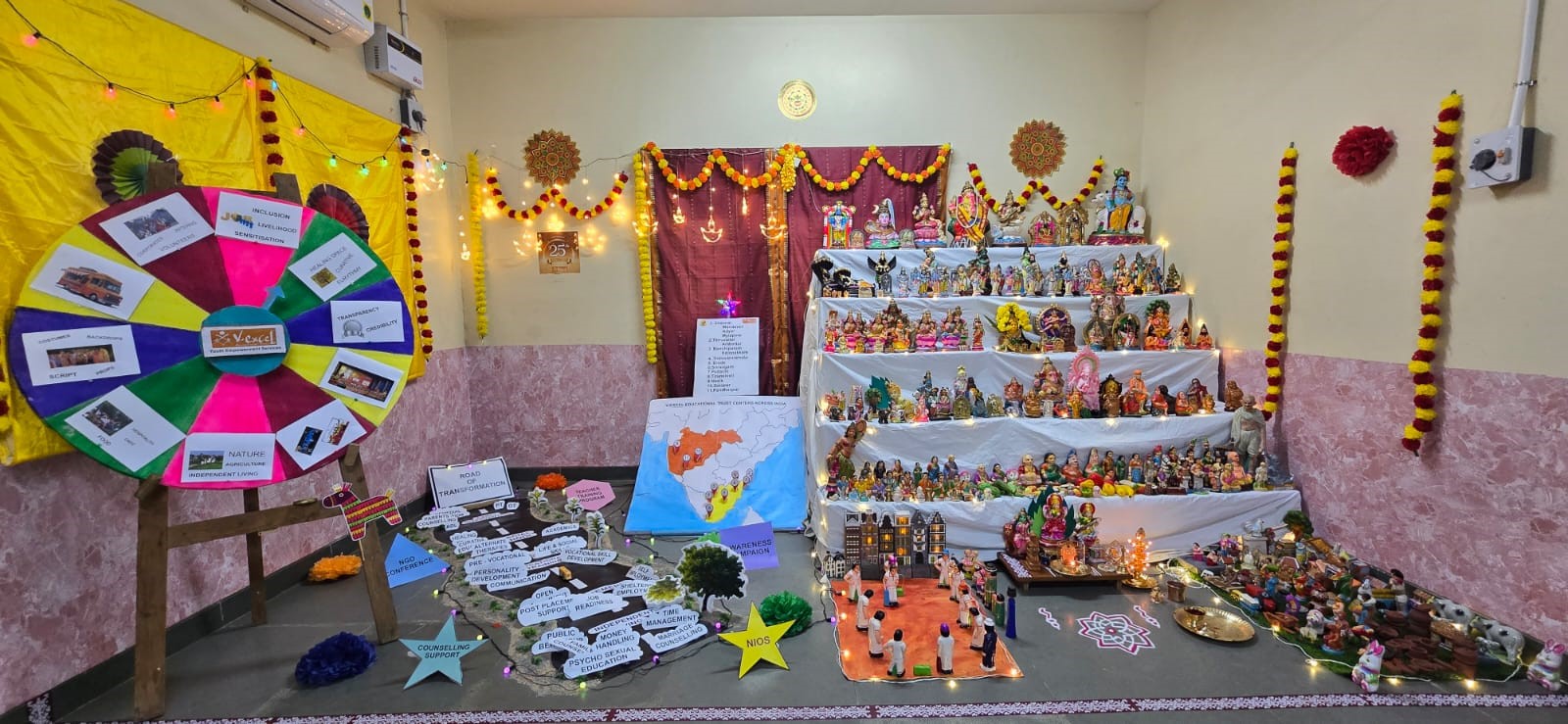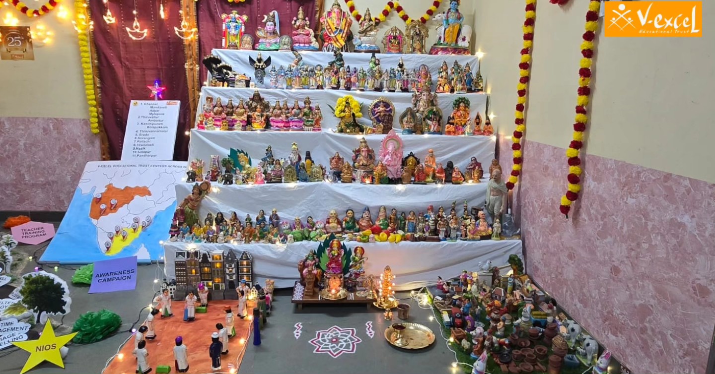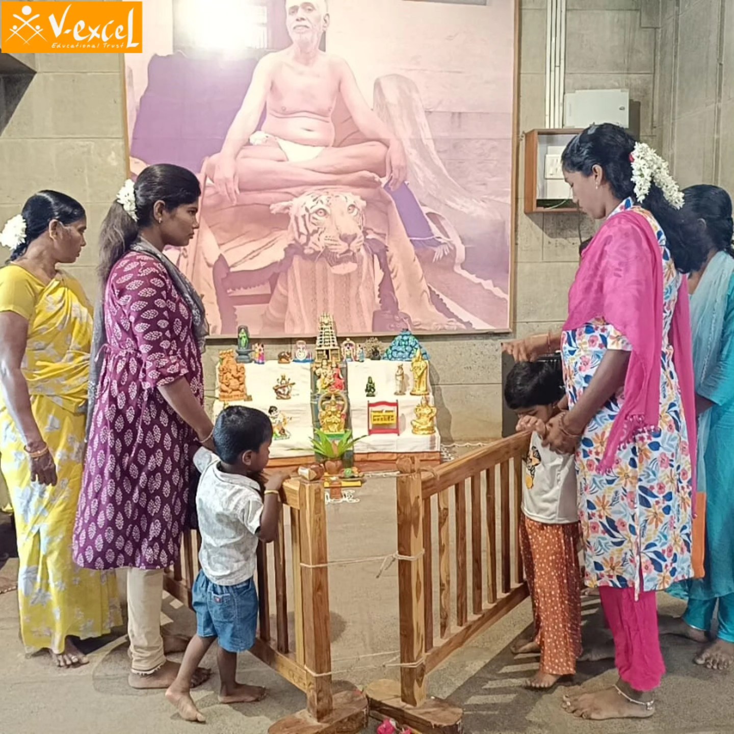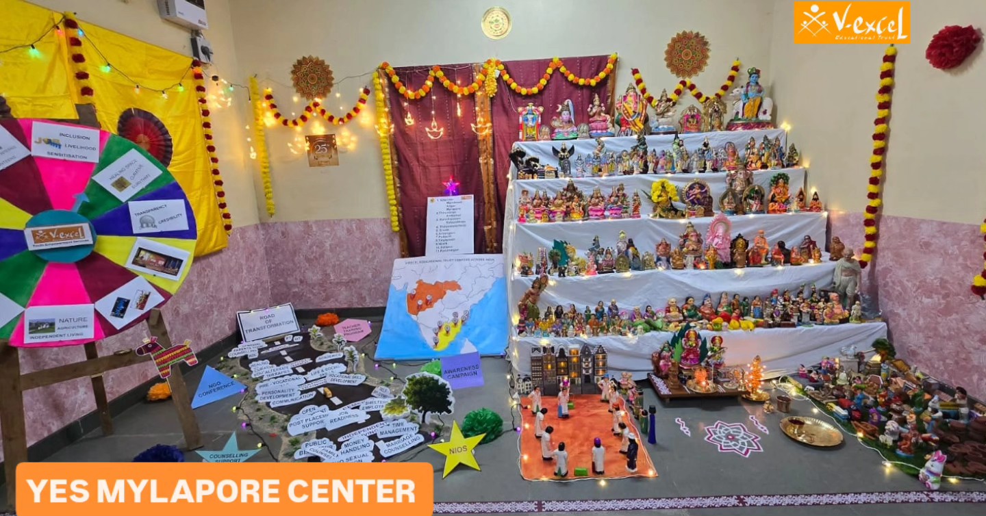 From September 22nd to October 2nd, V-Excel Therapy & Special Education Centre, Kolapakkam, hosted a Navratri Golu . The celebration began with prayers led by staff and children, followed by an invitation to parents to view the beautifully arranged dolls.