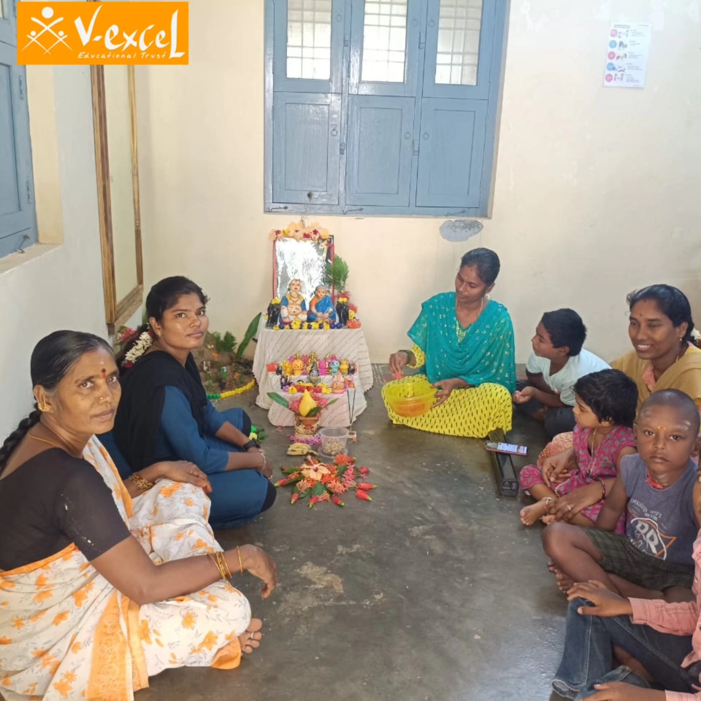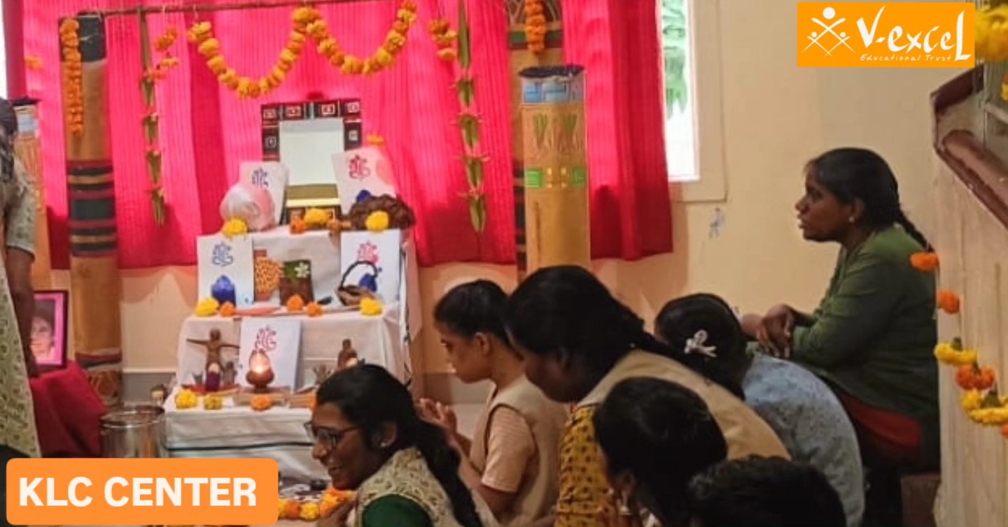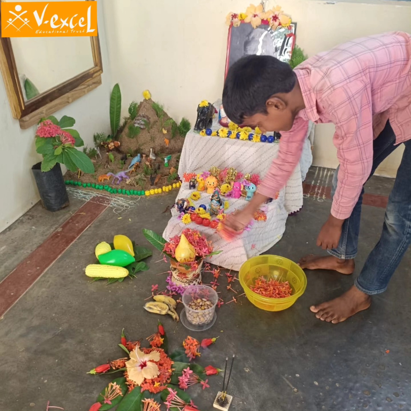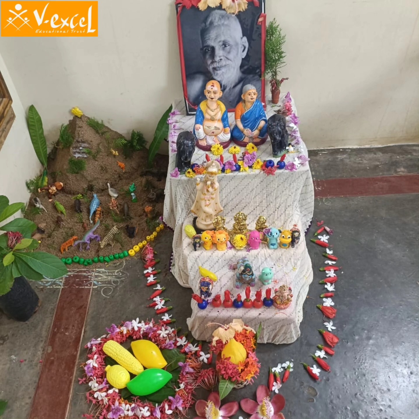 From September 22nd to October 2nd, V-Excel Therapy & Special Education Centre, Kolapakkam, hosted a Navratri Golu . The celebration began with prayers led by staff and children, followed by an invitation to parents to view the beautifully arranged dolls.