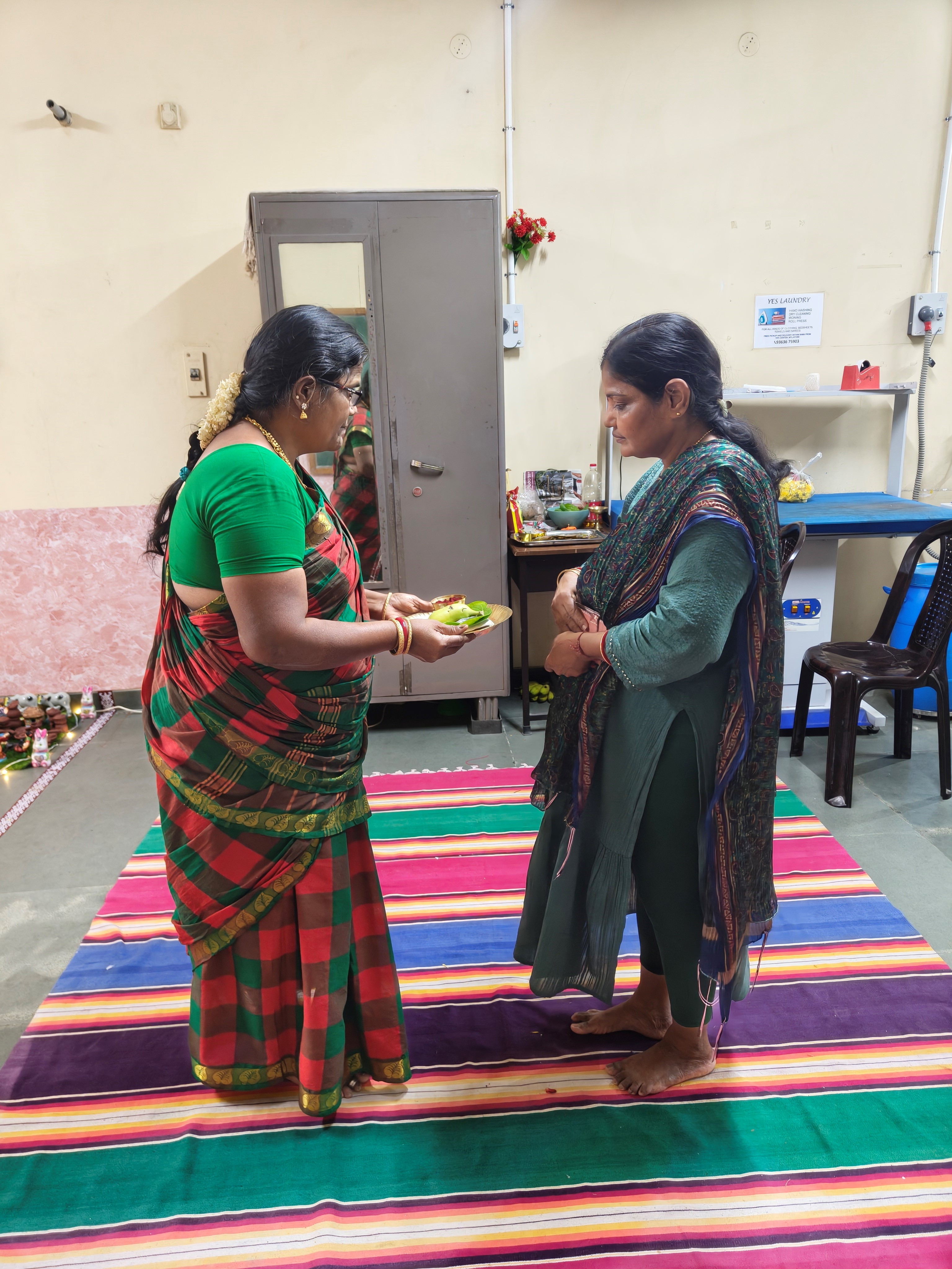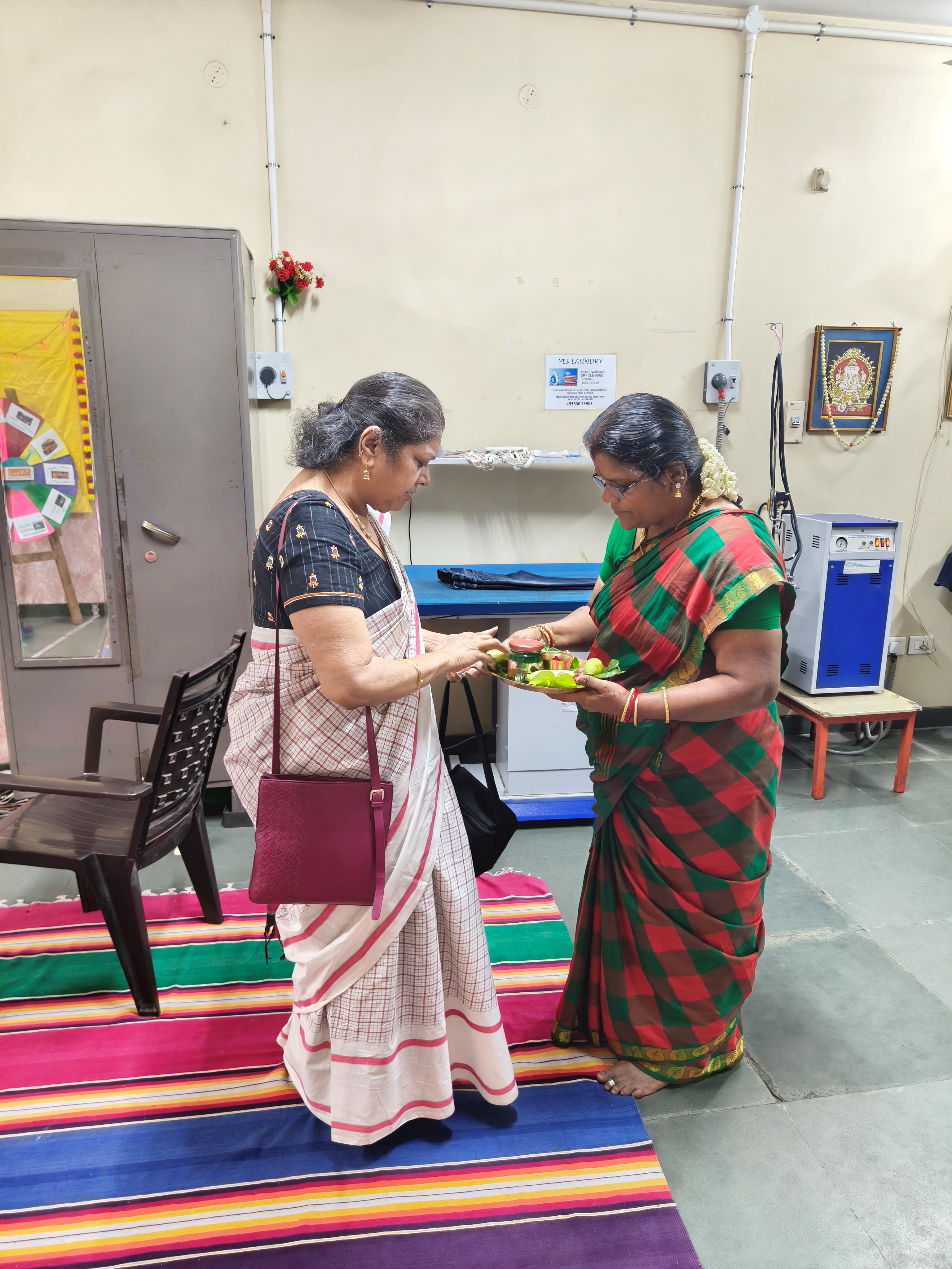 Guests from Super Auto Forge HR, including Mr. Gnanakaran, Mr. Abuthahir, and Mrs. Sumathy, attended the Navratri Pooja, participated in singing devotional songs, and added to the festive spirit. The occasion was made more special with the distribution of prasadam and thamboolam to parents and SAF HR staff.