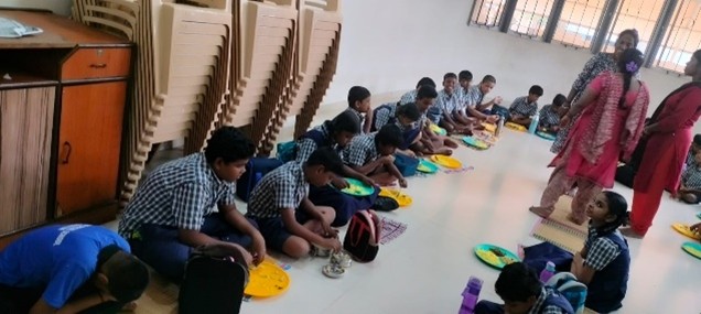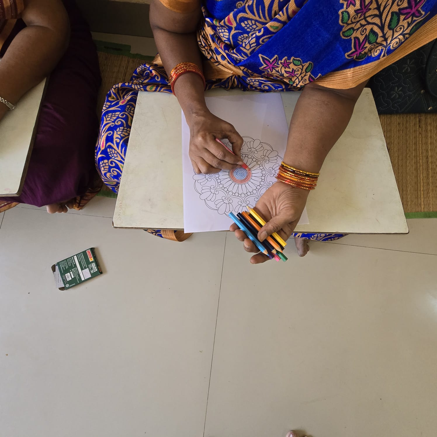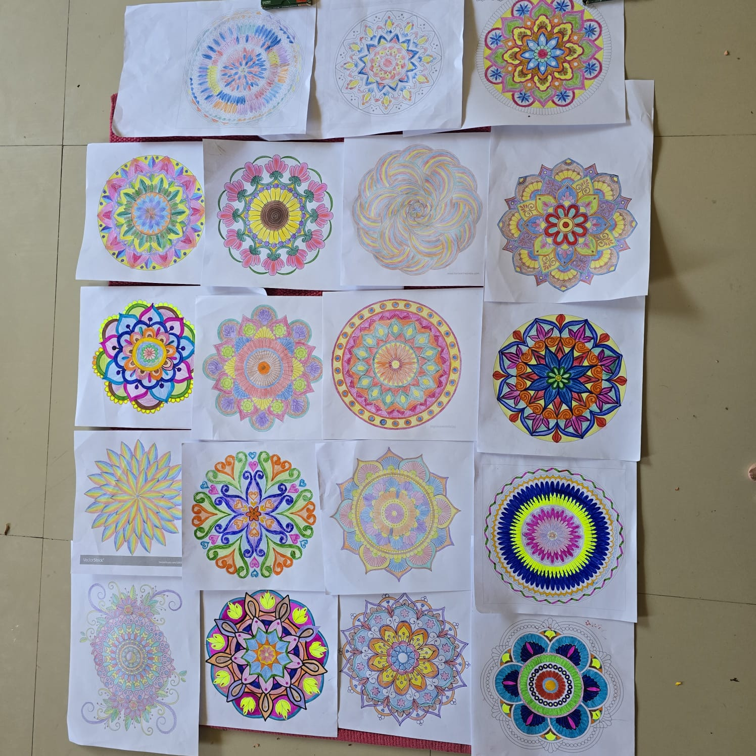 The 5th Friday was dedicated to fun and mindful creativity. Mahalakshmi proposed an afternoon of focused calm, where teachers worked on pre-designed mandala patterns, filling them with colour using pencils, crayons, and sketch pens. The room soon settled into a quiet rhythm as everyone brought the designs to life.