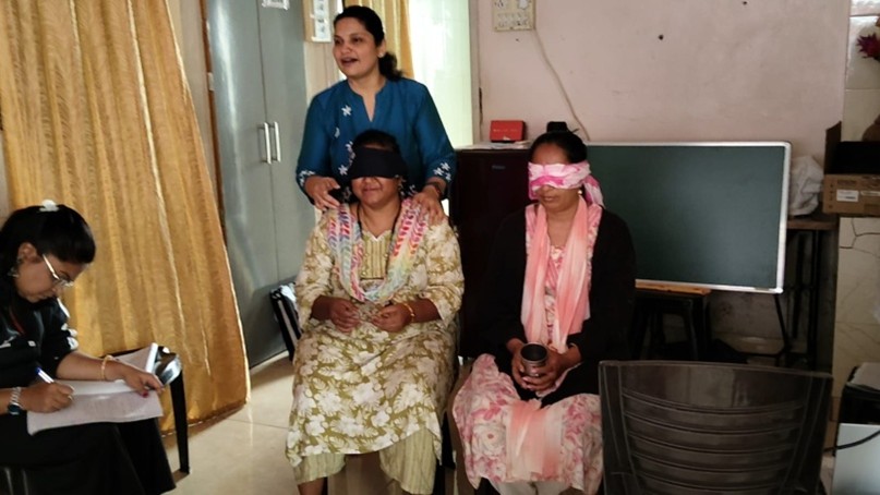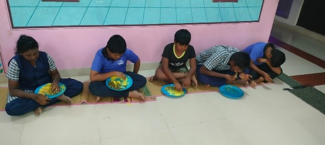 Trainees had their regular Vocational activities and were getting trained in skills such as stitching of Jute bags, making jute pen stand, cell phone pouch with bead work and block printing amongst other ongoing activities.