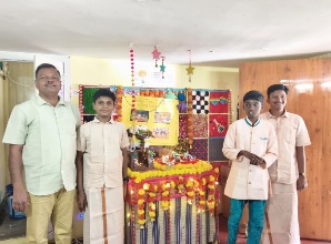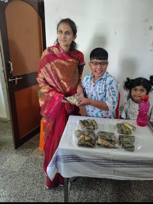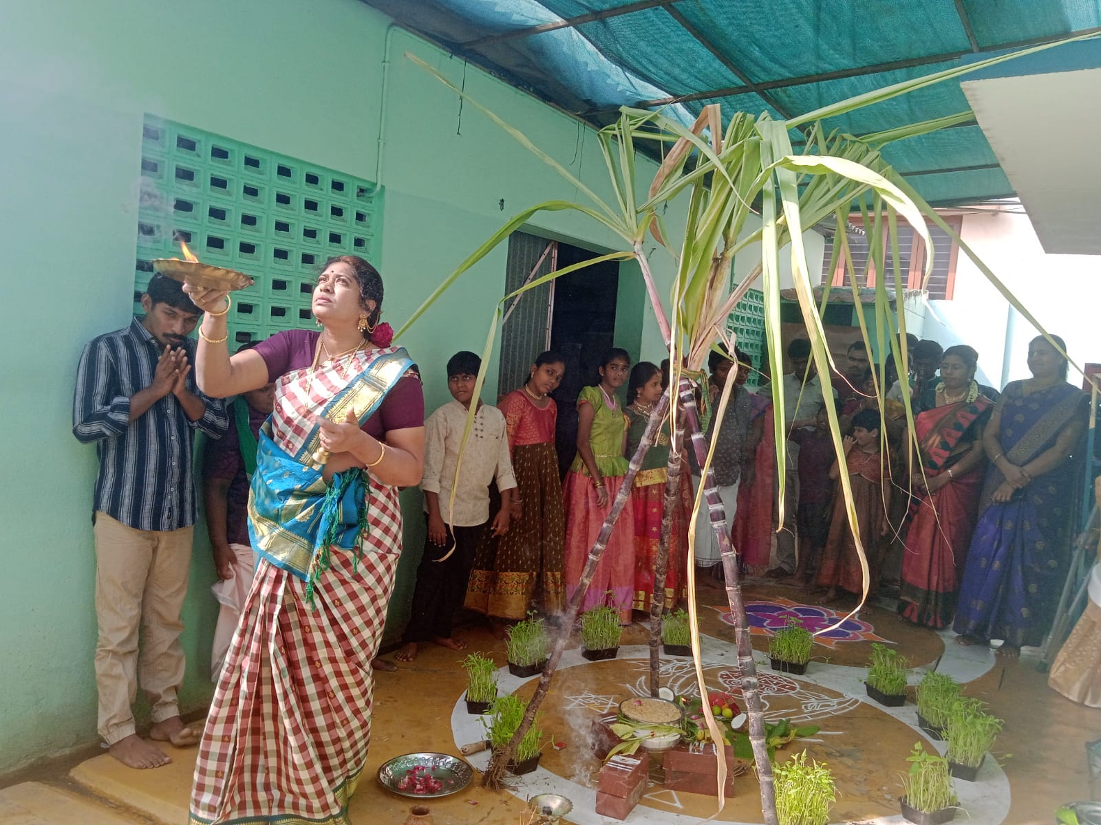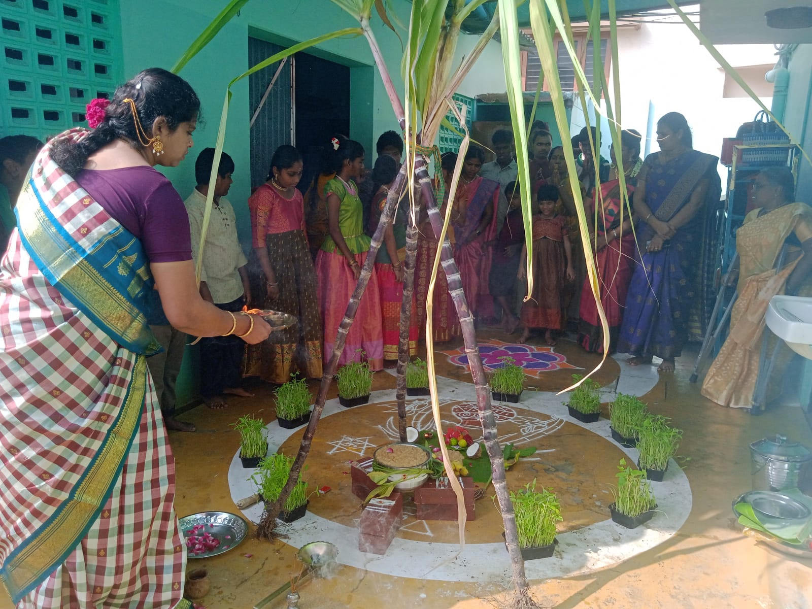 Dressed in traditional attire, the children took part in the celebration. After the Pooja, the children enjoyed the sweet Pongal which made the celebration wholesome and memorable.