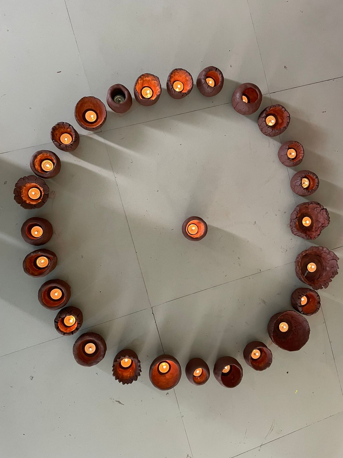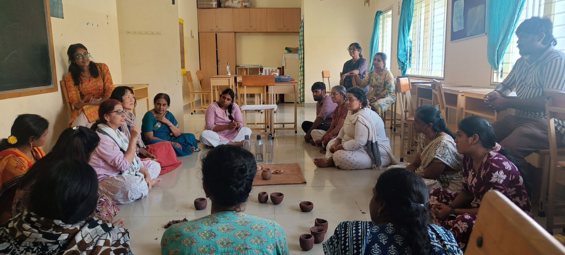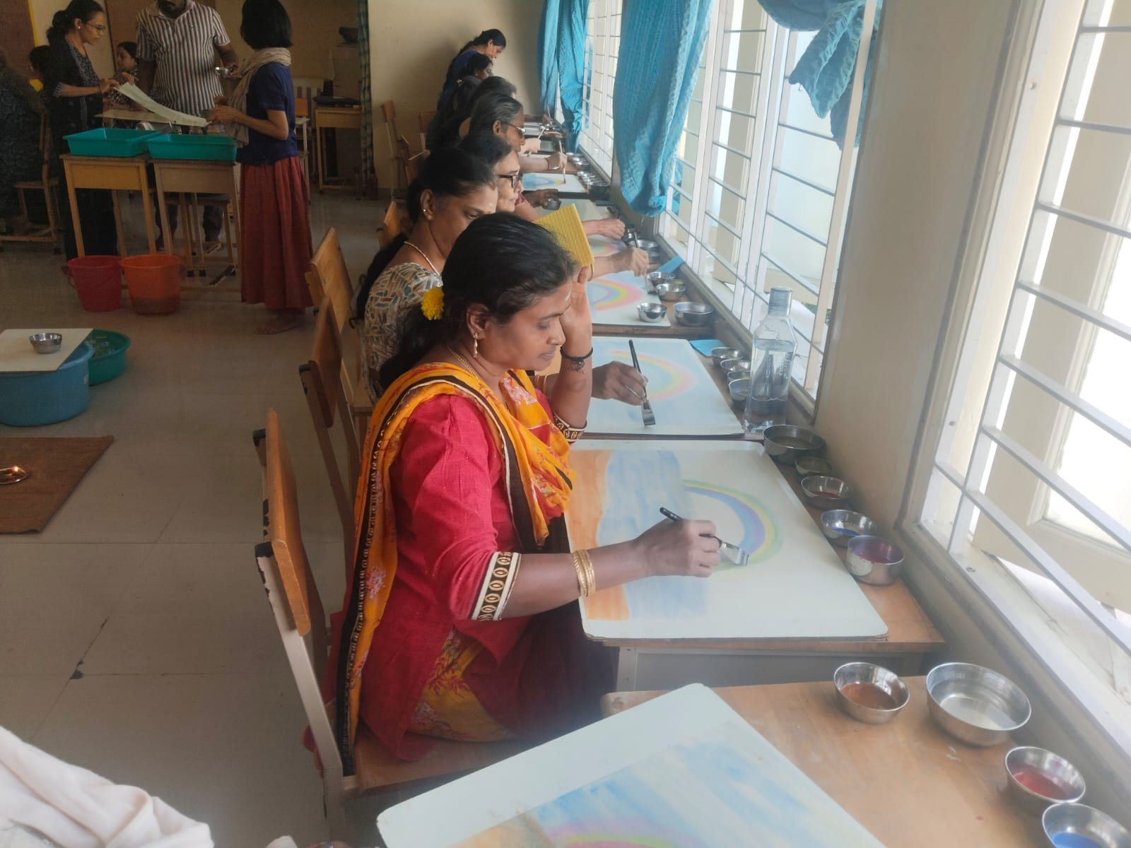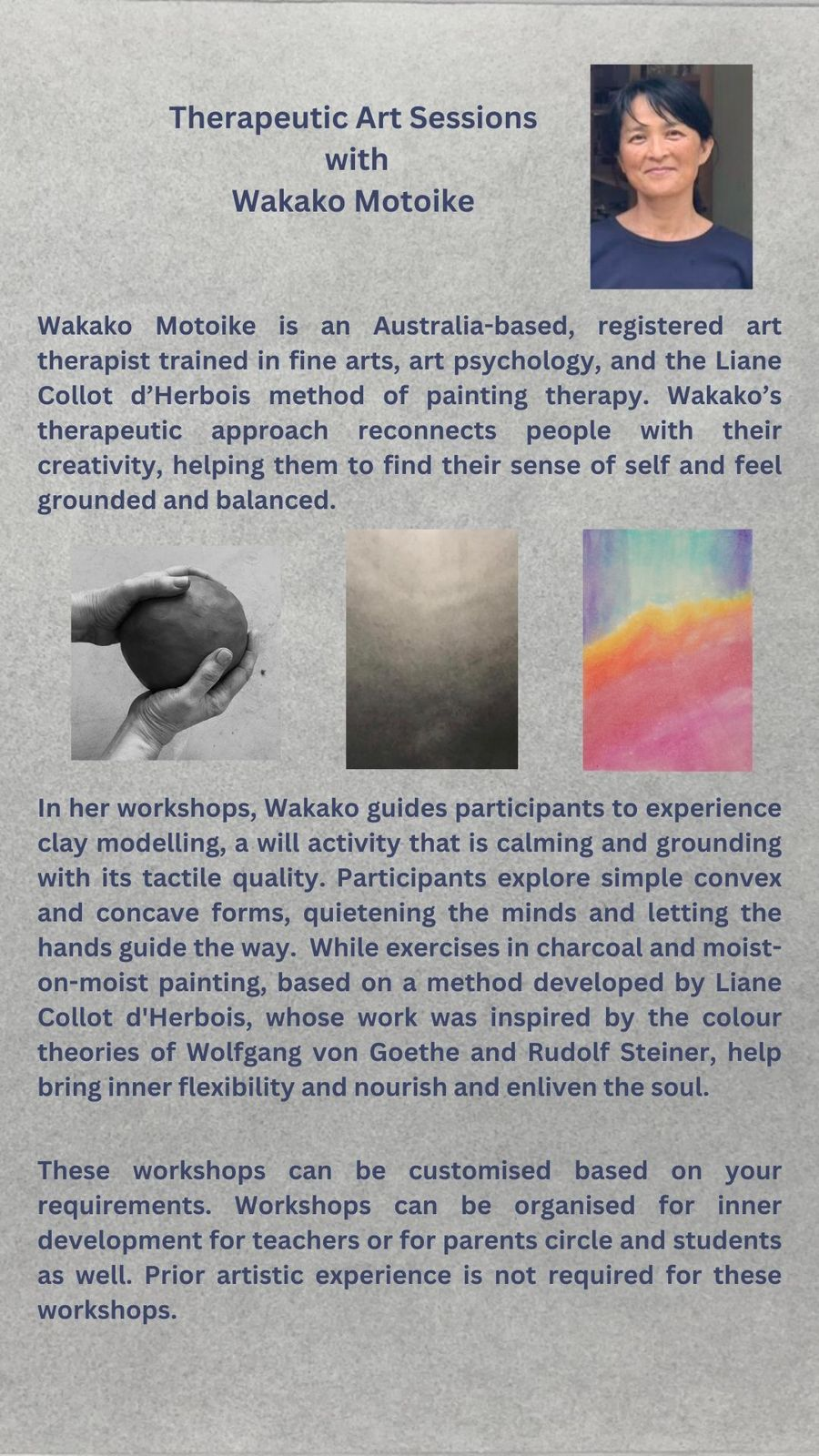 A Day with Wakako Motoike, offered our teachers a quiet, deeply nourishing space to slow down and reconnect with themselves through therapeutic art. The workshop gently guided participants through clay modelling, charcoal work, and painting — inviting the hands to lead while the mind softened. As simple forms took shape and colours slowly emerged, a sense of calm and inner balance unfolded. The tactile experience of clay grounded the body, while painting and charcoal opened pathways for reflection and creative expression. It became a beautiful day of stillness, healing, and shared presence — leaving everyone feeling lighter, centered, and quietly uplifted.