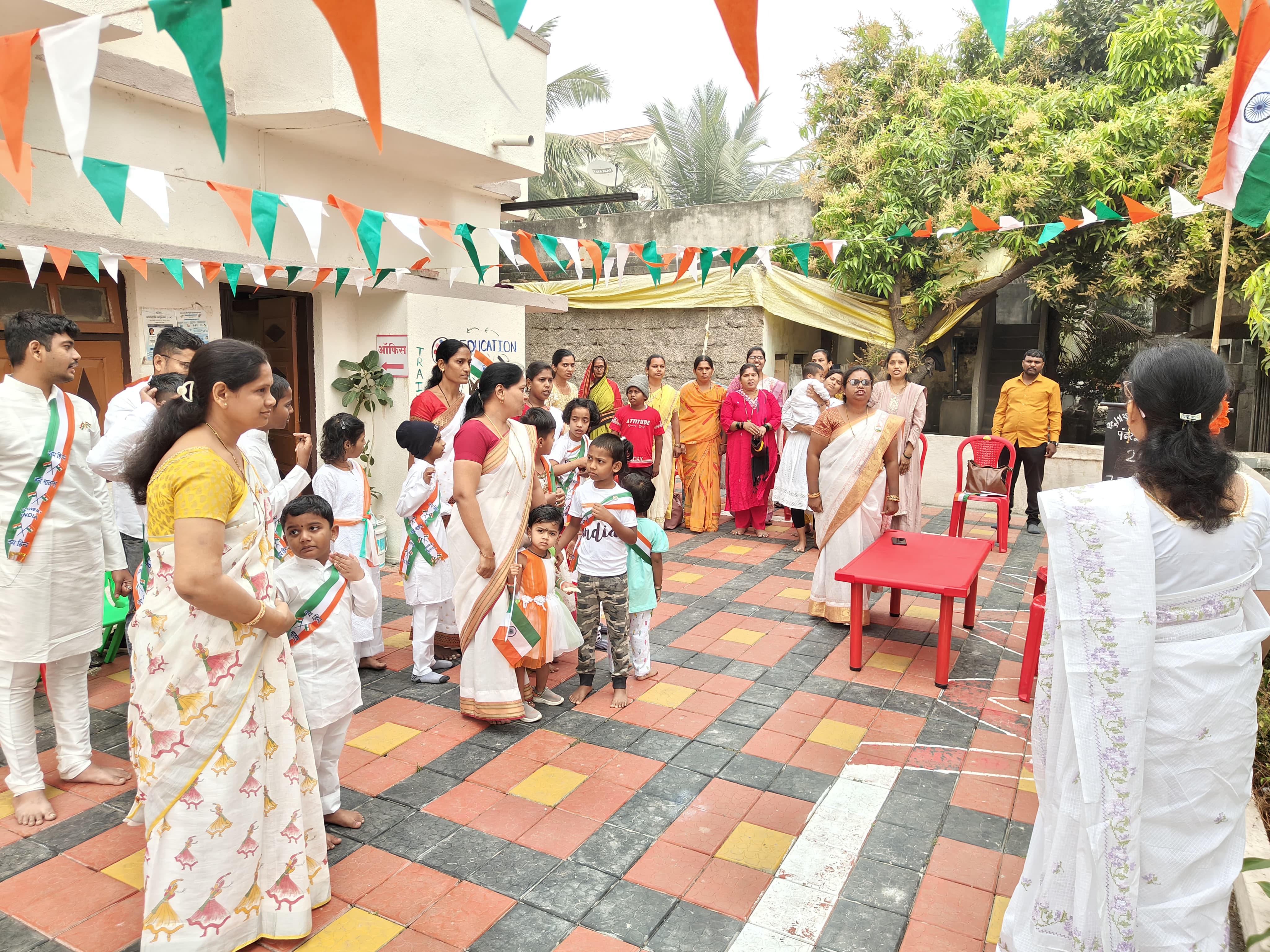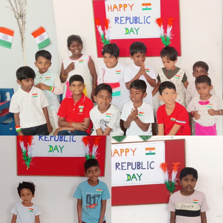 The kids began the Republic Day festivities by colouring the flag. The significance of the colours was explained. For a week, the national anthem was sung frequently and a patriotic song was taught. This was done as a small step to help our kids learn about our country and feel proud to be Indian.