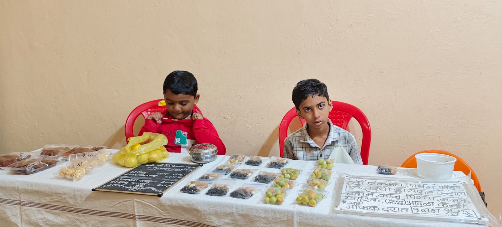 With the support of the teachers, the students have created a variety of handmade products for visitors to explore and purchase. These include organic painted cloth bags, cotton vati packets, handmade bracelets, javas (flaxseed) chutney packs, mukh shuddhi packs, decorative wall pieces, and many more.