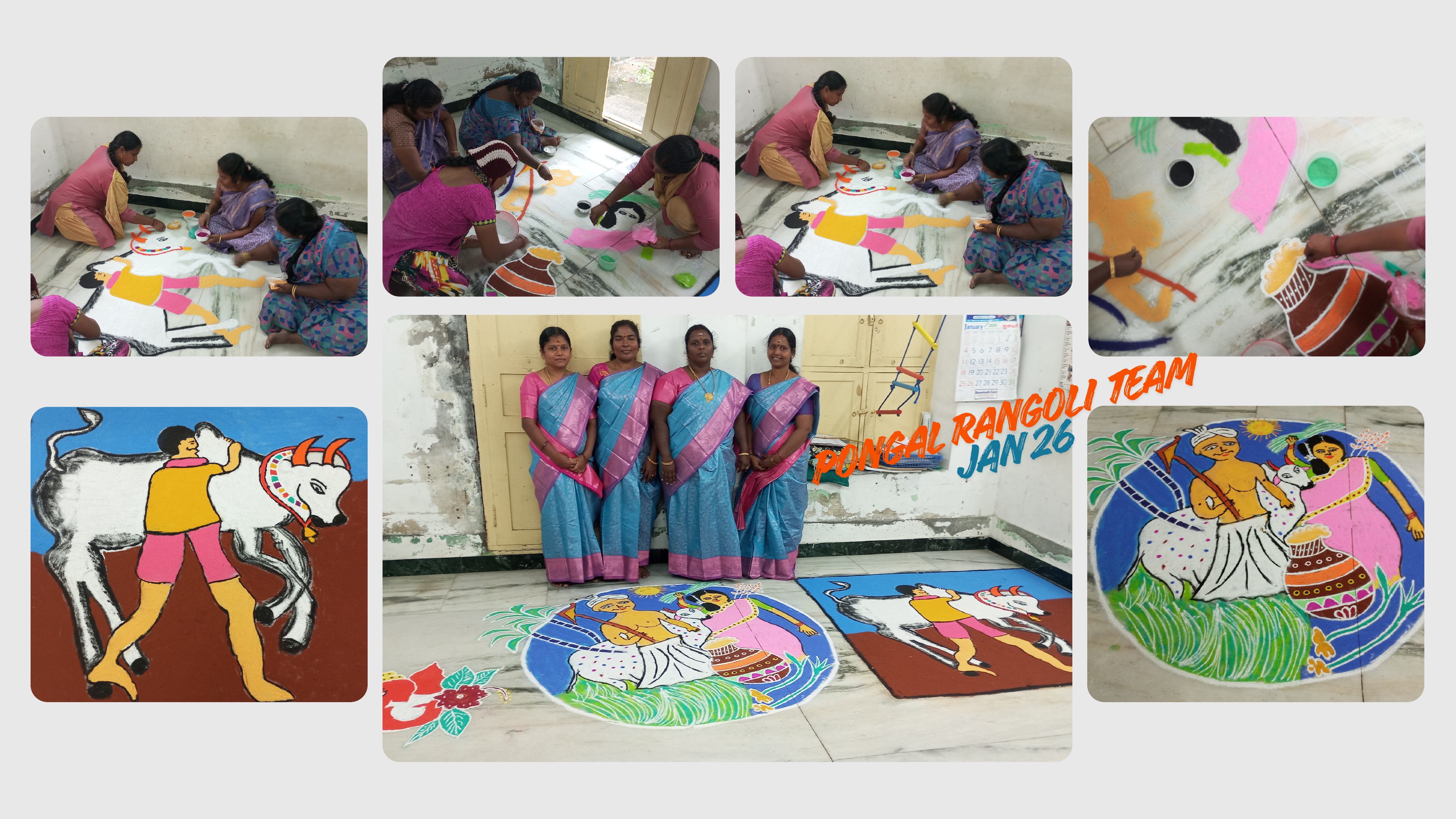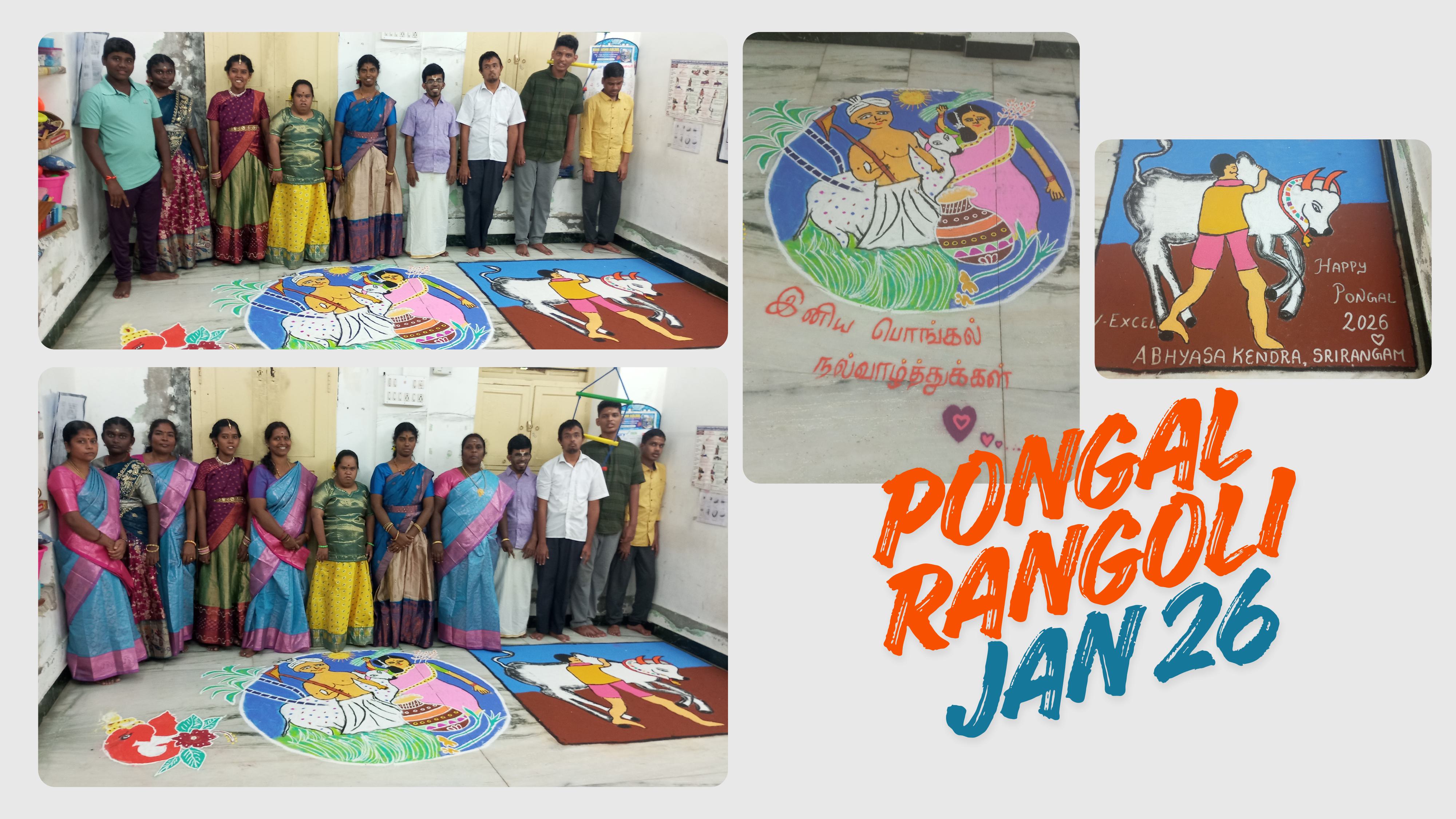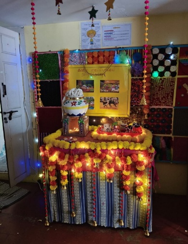 Pongal was celebrated at Sreyas on 14th, with bhajan singing, traditional Pongal making and colourful rangolis.