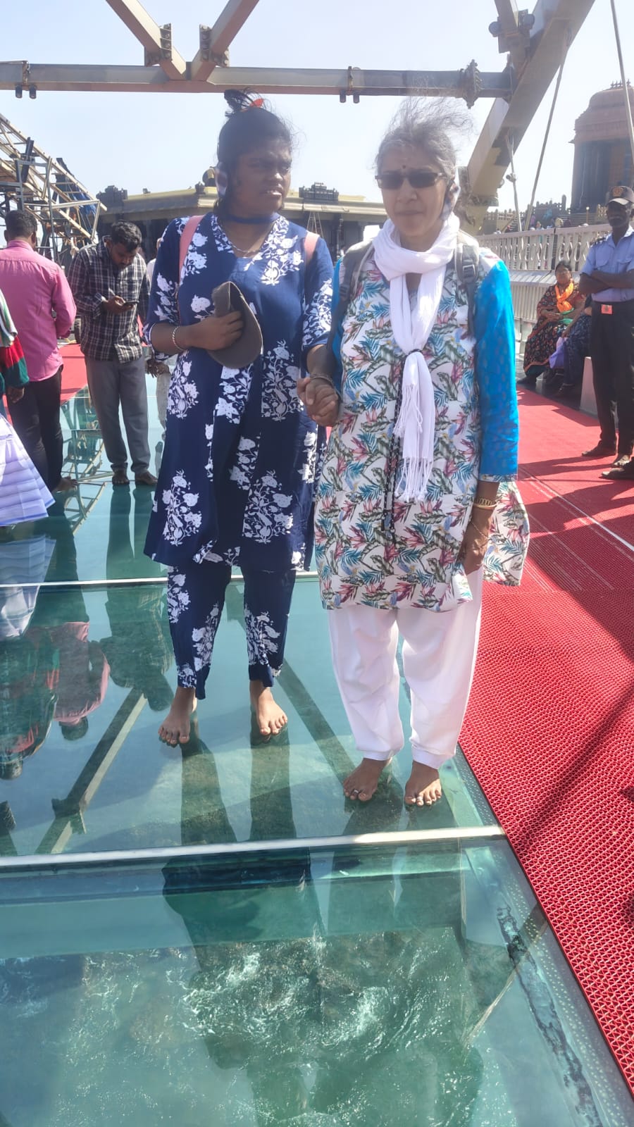 DAY - 3 Visit to Vivekananda Rock Memorial and Thiruvalluvar Statue by boat. Walk across the ocean on the glass bridge to the Thiruvalluvar Statue.Visit to Kumariamman sea shore Temple, and Triveni Sangam. (To witness the yellowish green Indian Ocean come together with the blue-green Arabian sea and a turquoise blue/ green rough Bay of Bengal)