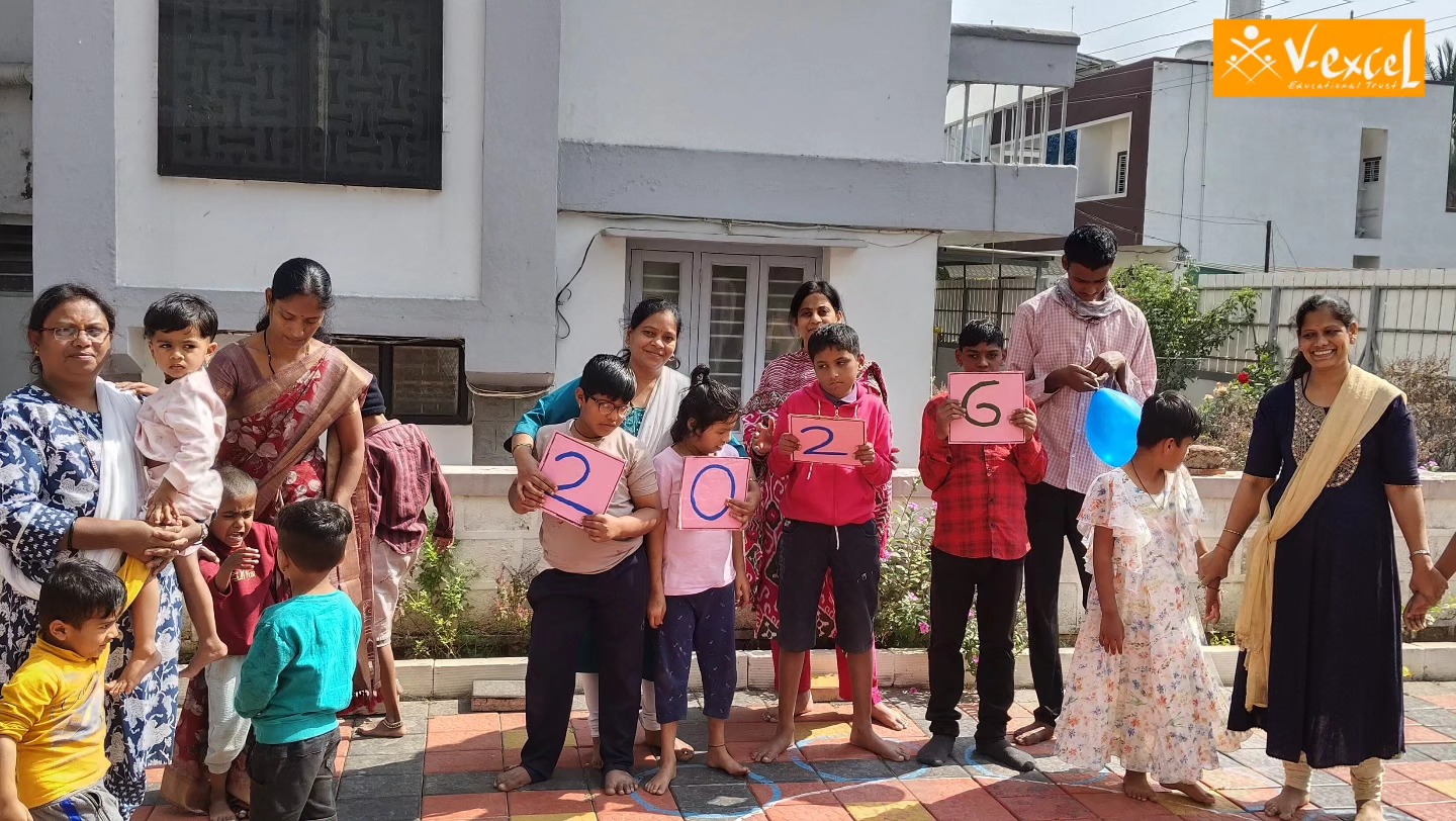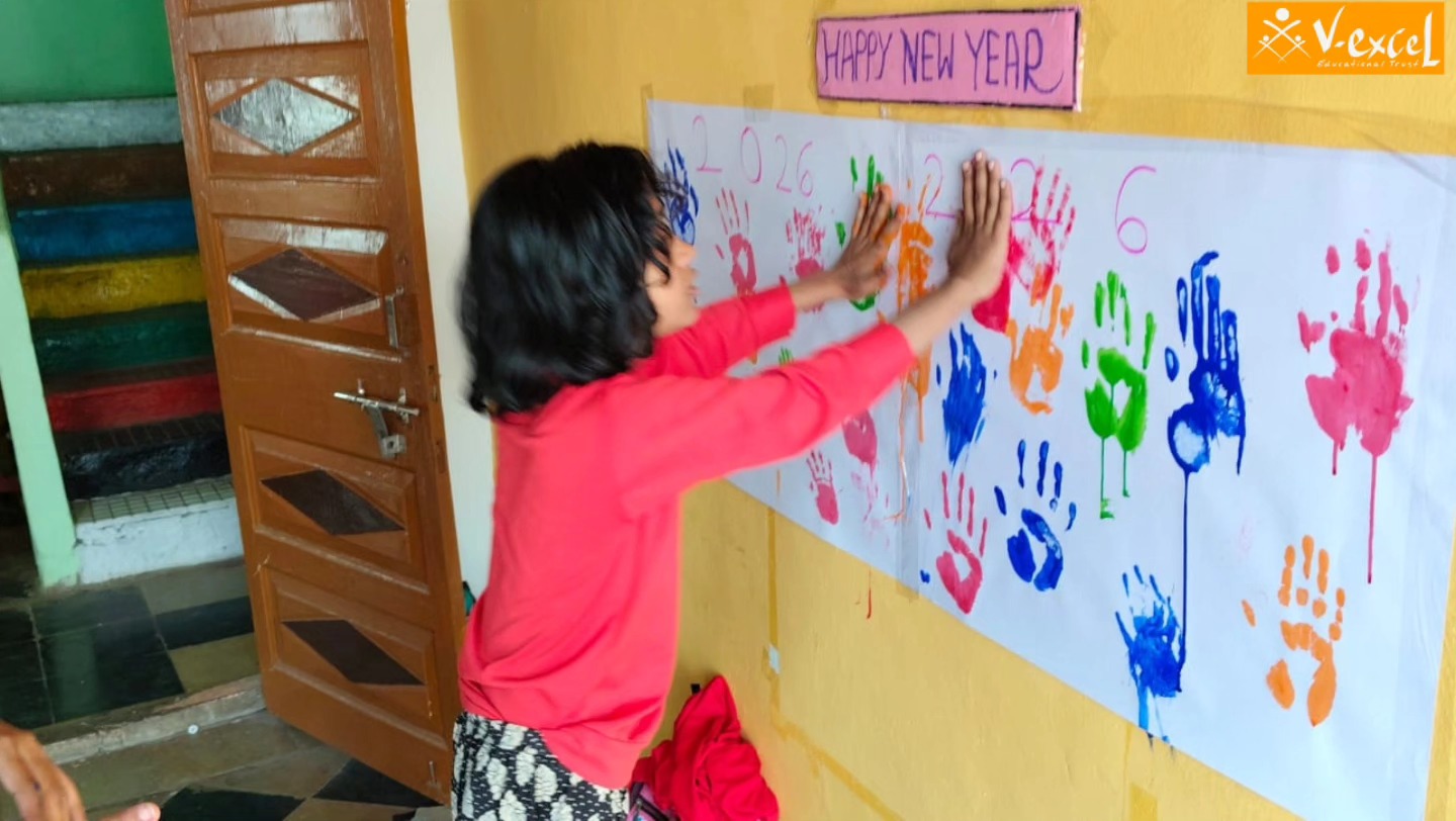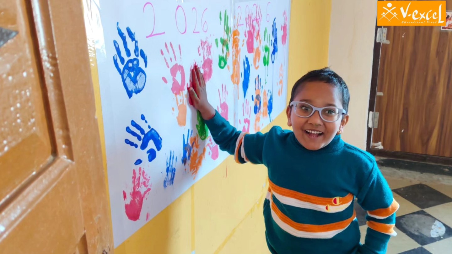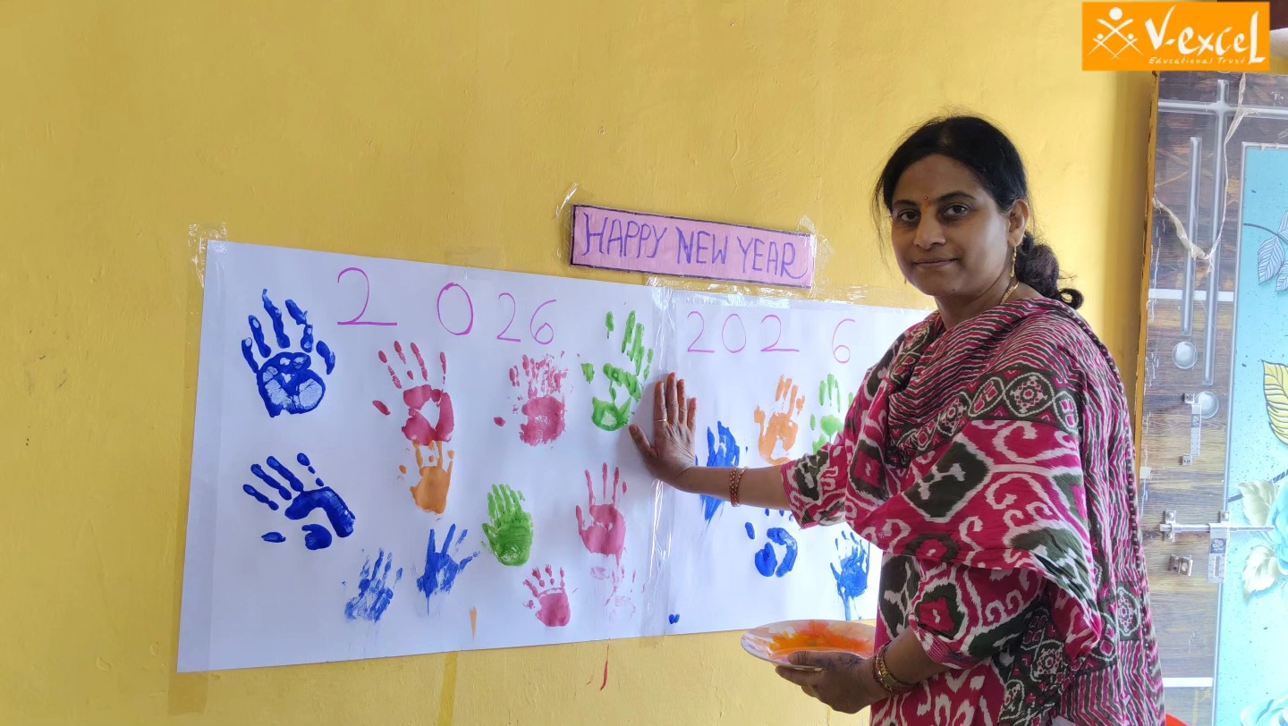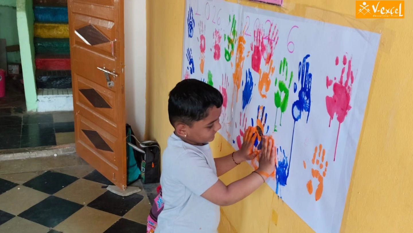 V-Excel Educational Trust, Pandharpur Centre welcomed the New Year with a joyful celebration, filled with fun activities, crafting, and music. A special highlight was a thoughtful hand-painting activity, a traditional handprint impression exercise symbolising blessings, shared memories, and new beginnings. The enthusiasm and engagement of the children reflected the spirit with which the New Year was welcomed.