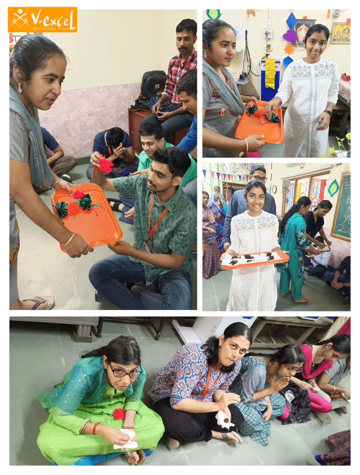 Each vocation contributed in its own special way: the Printing and Documentation Unit prepared greeting cards, the Art and Craft Department created colorful pom-poms, the Kitchen Team baked a delicious cake, and the Laundry Team beautifully decorated the space. Our therapists conducted engaging and meaningful games, adding an interactive touch to the celebrations.