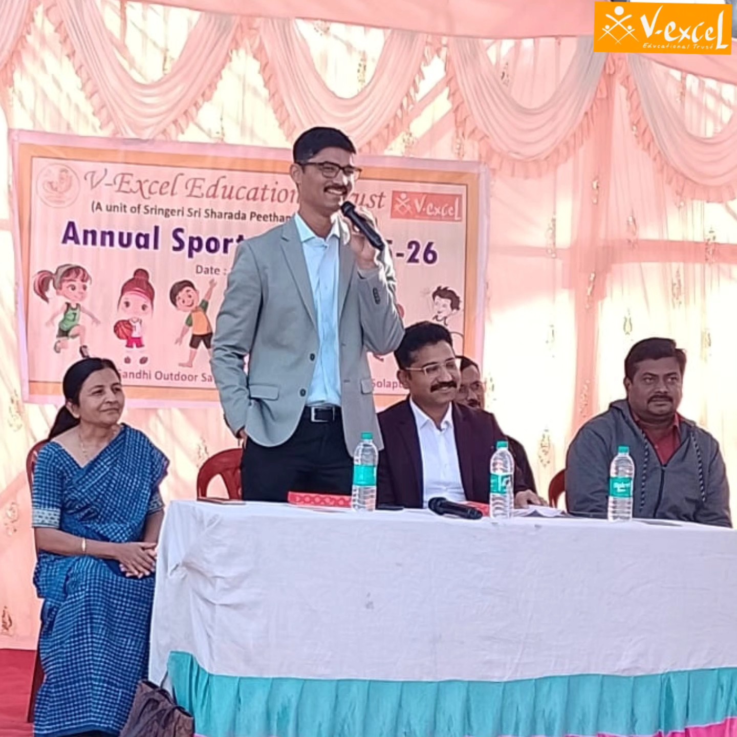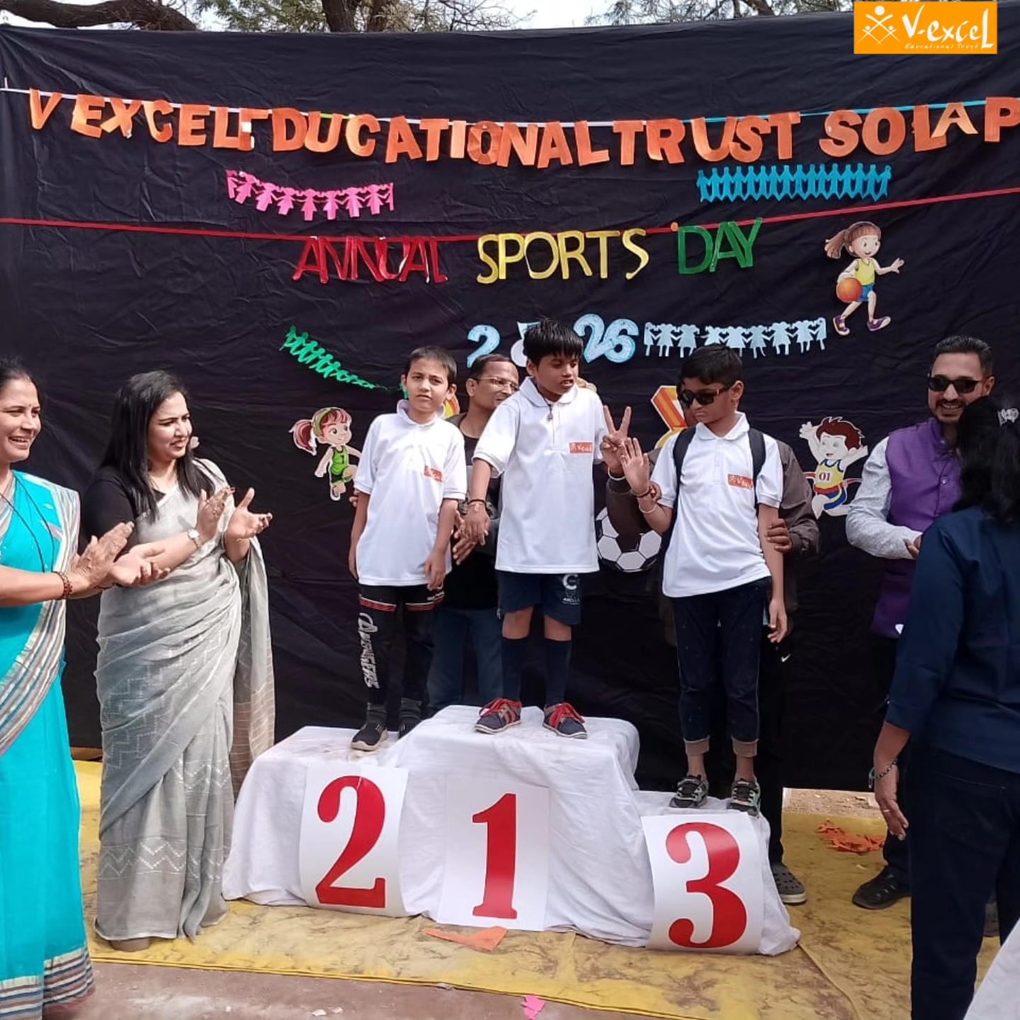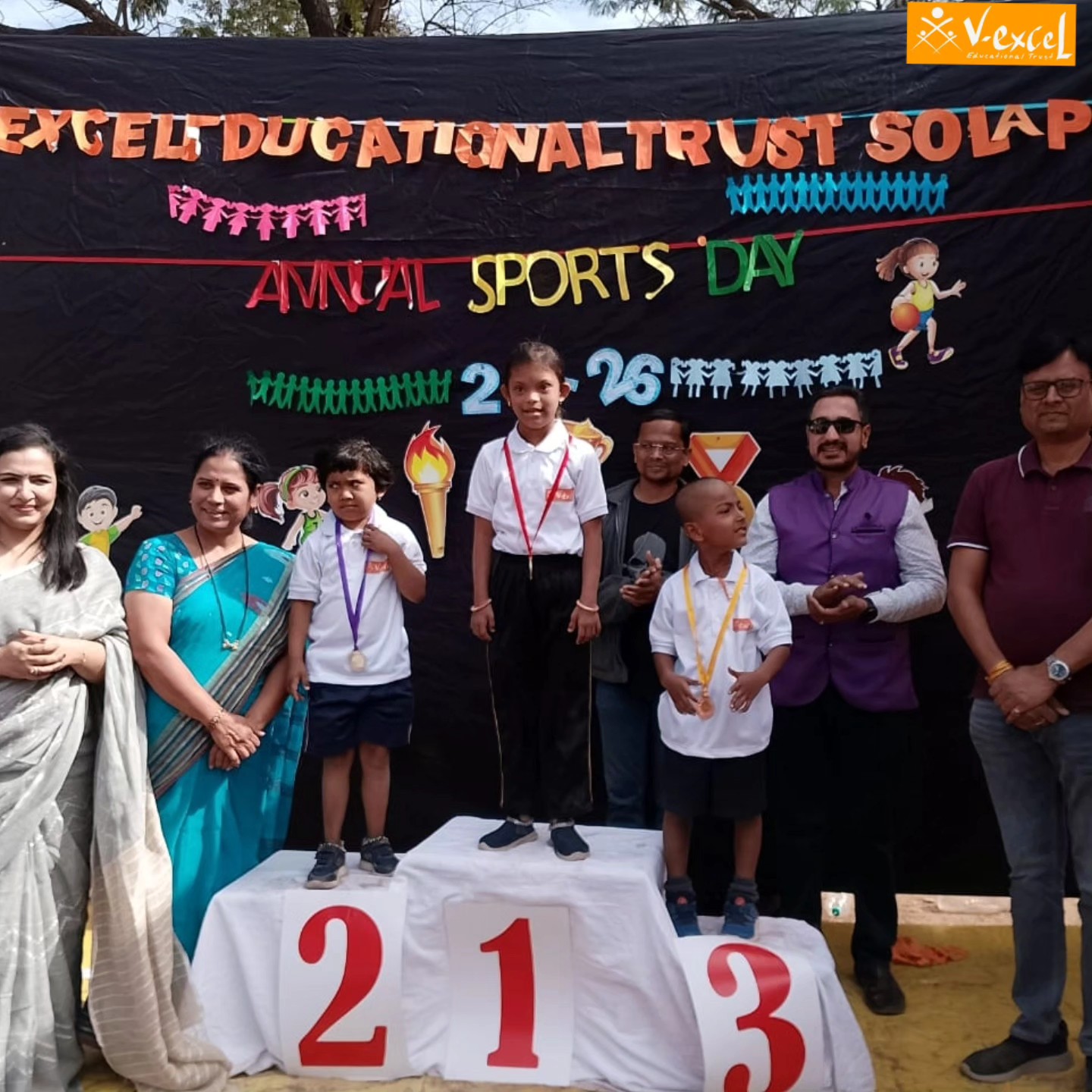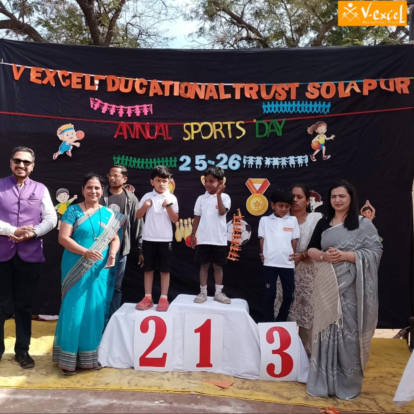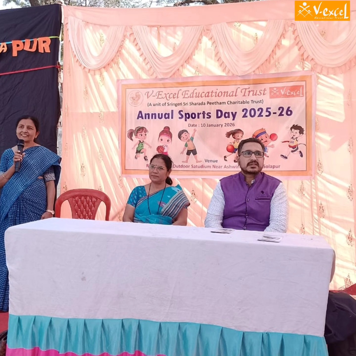 V-Excel Educational Trust, Solapur, celebrated its Annual Sports Day 2025–26 on 10-Jan-2026 with great enthusiasm and energetic participation from children across all units.