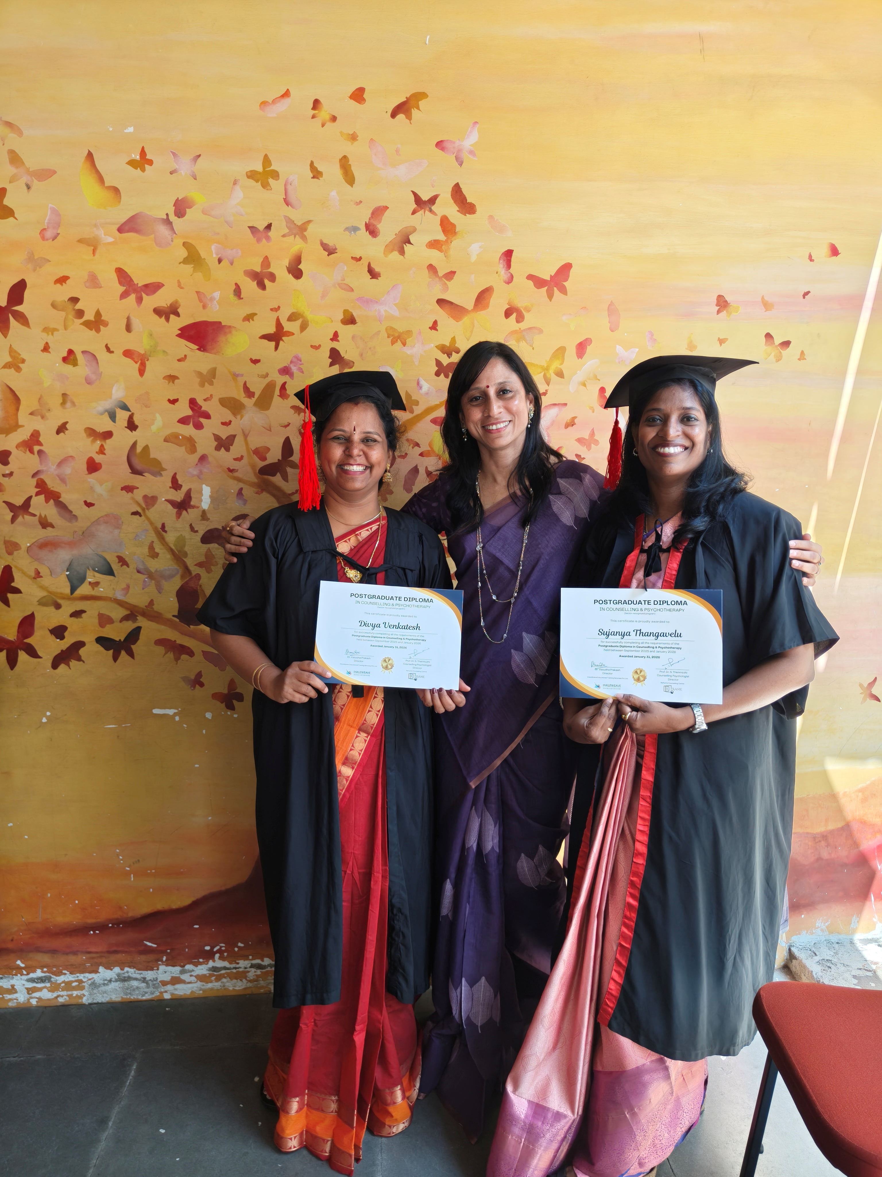 With great pride YES team is happy to share that 2 of the staff members, Divya and Sujanya successfully completed the PG Diploma in Counselling and Psychotherapy. This was a 3-month weekend course and included all the tools and techniques of counselling. This course was curated and conducted by Dr. Vasudha Prakash, Founder-Director V-Excel Educational Trust and MindWeaves Wellness and Dr. Thenmozhi Founder-Director, Reframe Counselling Centre. This course is aimed at self-development and understanding different strategies while working with special children. YES team appreciates the efforts of Divya and Sujanya and congratulates both.